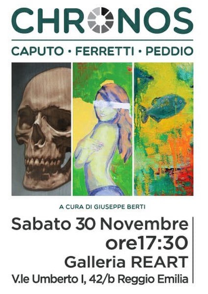 Alla Galleria Reggio Arte ReArt (Viale Umberto I, 42/B – Reggio Emilia), tre artisti affrontano il tema del tempo, tra epifanie, visioni, rimandi mitologici e riflessioni sulla caducità della vita. Curata da Giuseppe Berti con opere di Antonio Caputo, Giorgio Ferretti, Michael Peddio, l’esposizione, intitolata “Chronos”, sarà inaugurata sabato 30 novembre alle ore 17. 30.