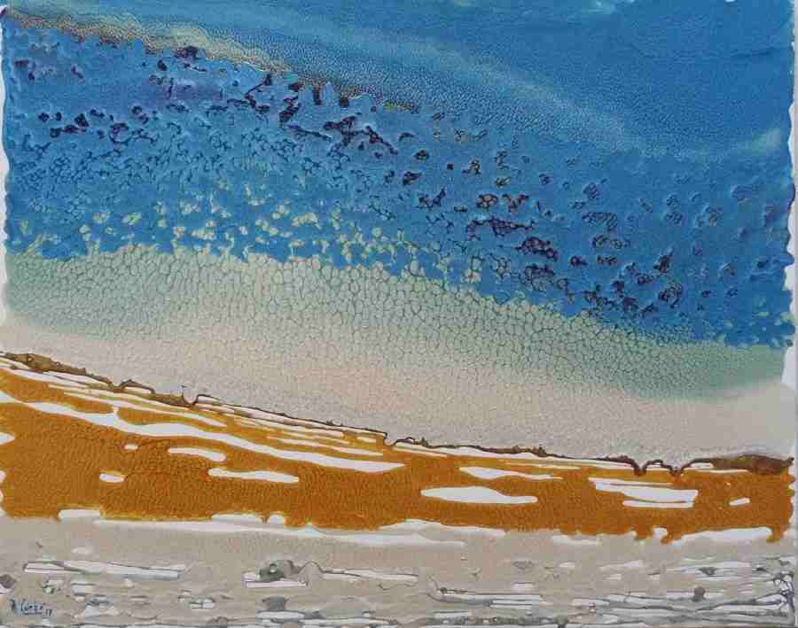 Ultimamente, poi, Antonio Corbo torna a stupirci con una nuova produzione e/o un nuovo percorso di ricerca che, abbandonata l’intensità cromatica iniziale, sembra tutto concentrato sul monocolore e sulla delicatezza delle tinte, chiare e delicate, leggere e poetiche. Sembra quasi che l’artista, in questa fase della sua produzione pittorica, rivolga la sua attenzione non tanto e non solo allo spazio, all’esplorazione del cosmo e dei suoi infiniti spazi, ma ad altri luoghi ed altre realtà, ad altri territori ed altri universi. E allora i suoi sfondi, di solito invasi da una consistente e variopinta materia cromatica, hanno subito un profondo ed inaspettato cambiamento: il buio della notte siderale si è fatto luce piena, i fondi grumosi e accesi si sono fatti chiari e luminosi richiamando stati interiori di quiete e armonia, di pace e tranquillità. Senza dubbio Antonio Corbo ha sentito l’influenza della “Poetica Paradisiaca” proposta alla Triennale di Roma del 2014 e l’ha fatta sua trovando in essa quei valori e quei principi che già appartengono e fanno parte del suo “credo” artistico ed espressivo. Un ulteriore e significativo apporto si è così aggiunto alla sua espressione già ricca e variegata coinvolgendo lo spettatore in altri meravigliosi viaggi, in altre approfondite ricerche dentro i misteri dello spazio e dell’animo umano.