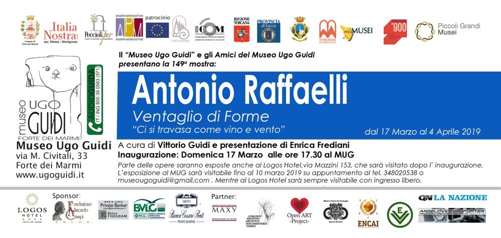 Il Museo Ugo Guidi – MUG di Forte dei Marmi realizza il 149° evento d'arte presentando l'esposizione di Antonio Raffaelli, pittore, scultore e fotografo dal titolo: Ventaglio di Forme “Ci si travasa come vino e vento” a cura di Vittorio Guidi.