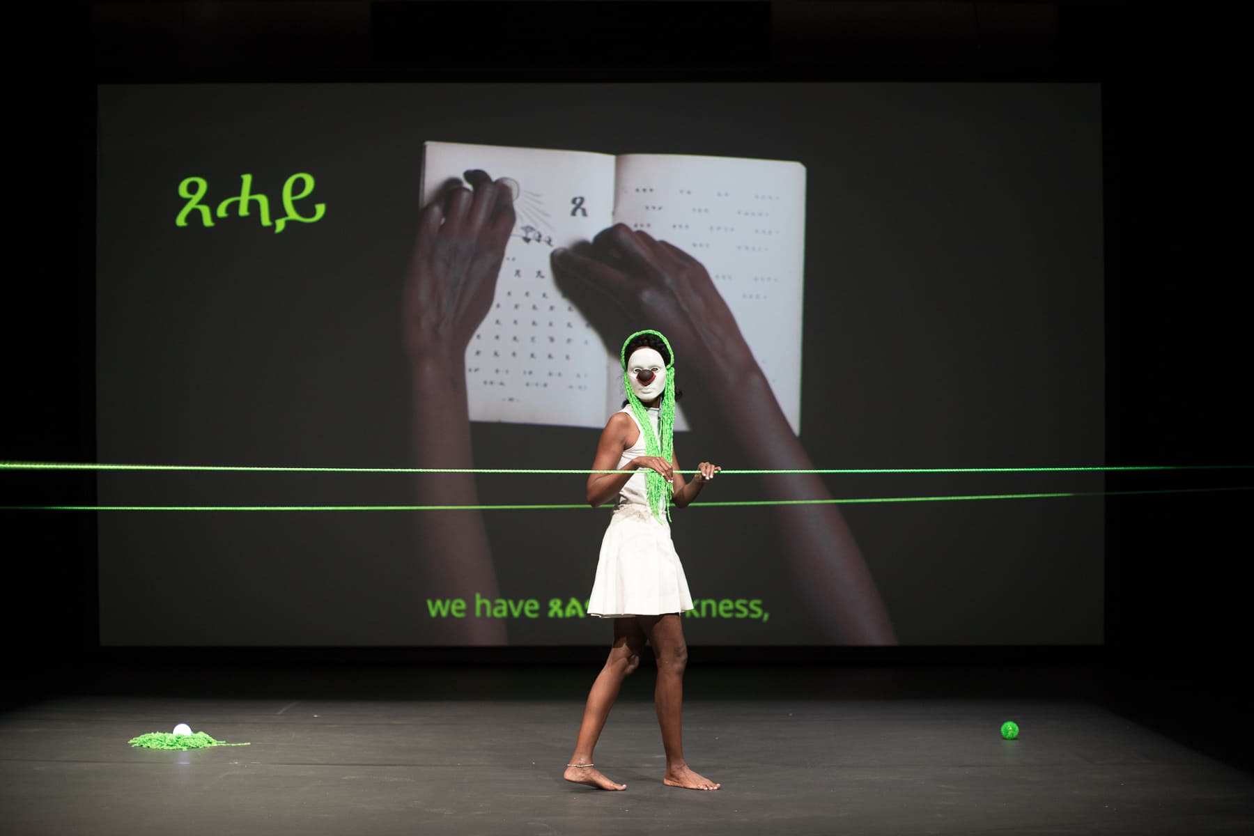 Anche Chiara Bersani, nella sua ultima performance L’Animale (17-18 giugno) lavora per intaccare un immaginario consolidato all’interno della disciplina della danza: quello del cigno, che sembra essere indiscutibilmente legato ai corpi regolati da canoni estetici e schemi iconografici rigidi. La coreografa con disabilità, che da anni lotta in prima persona per l’inclusione di artisti e artiste con disabilità nelle arti performative, si espone per scardinare il concetto di abilismo, e altre forme di discriminazione. A questa tematica di lotta contro ogni discriminazione, è legato anche l’ultimo lavoro di Muna Mussie, Curva Cieca (19 giugno): fulcro della performance - potenziata dal workshop “Verso l’immagine” (17 giugno) - è la scoperta della lingua materna dell’artista. Parole, segni e fluttuazioni di senso si compongono intorno alla voce di Filmon Yemane, non vedente dall’età di dodici anni, che diventa pista sonora per l’ascolto di lezioni di tigrino (una delle lingue ufficiali eritree). In linea con le sfumature politico-inclusive di apap, le performance di Chiara Bersani e Muna Mussie diventano reale dispositivo meta-didattico grazie all’ausilio di Camilla Guarino e Giuseppe Comuniello e alle loro audiodescrizioni: Giuseppe è non vedente, danzatore e con Camilla, danzatrice e drammaturga si occupano insieme da anni di creare audiodescrizioni poetiche live di spettacoli di danza e performance.