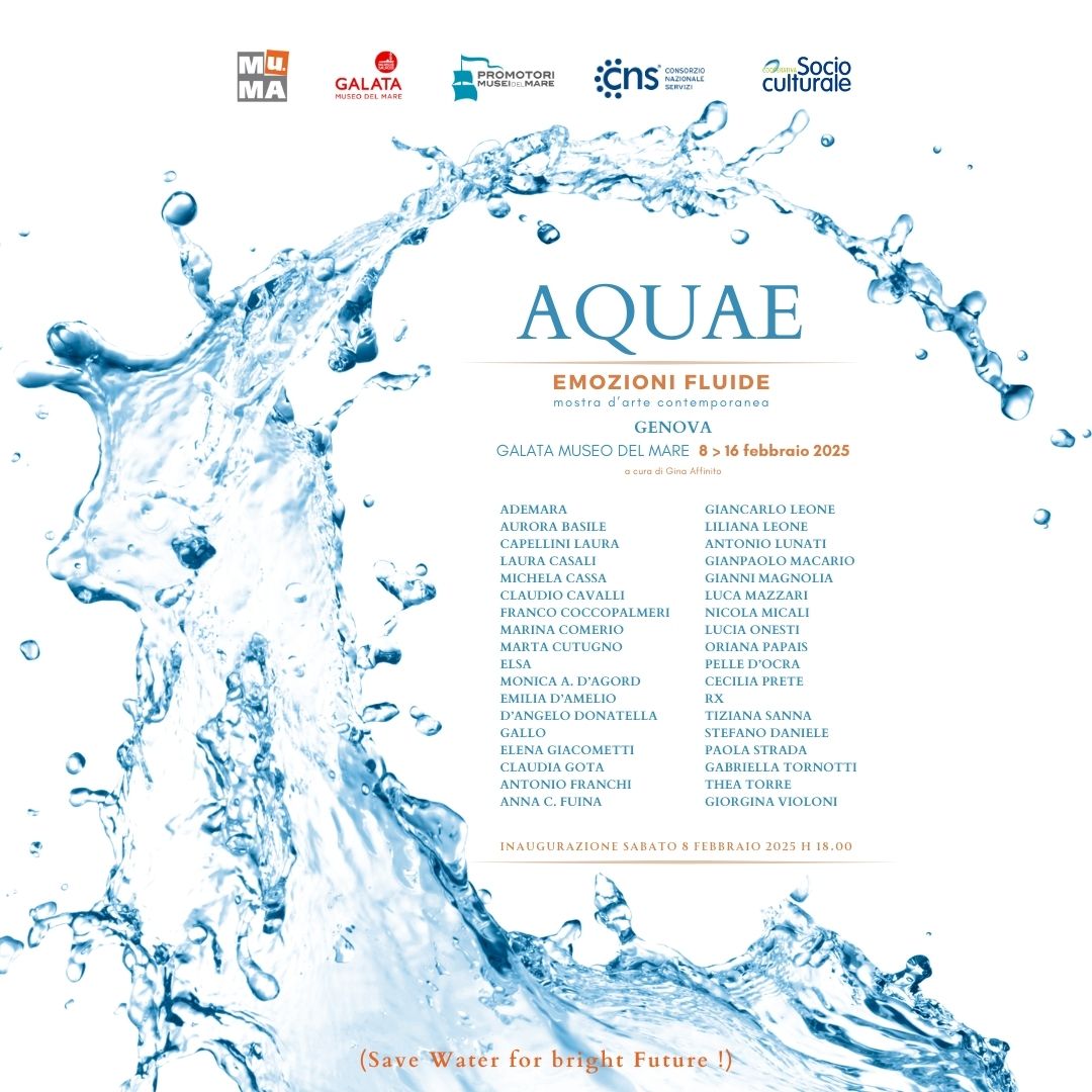 Dal 8 al 16 febbraio 2025, con inaugurazione sabato 8 febbraio h 18.00 ad ingresso libero, il Galata Museo del Mare ospita la mostra “Aquae”, collettiva di arte contemporanea curata da Gina Affinito. In esposizione presso la Saletta dell’Arte al primo piano del Museo, una selezione di 36 opere, create appositamente da n 36 artisti provenienti da diverse realtà geografiche del panorama artistico contemporaneo, che mettono in luce la sacralità ancestrale dell’elemento acqua.