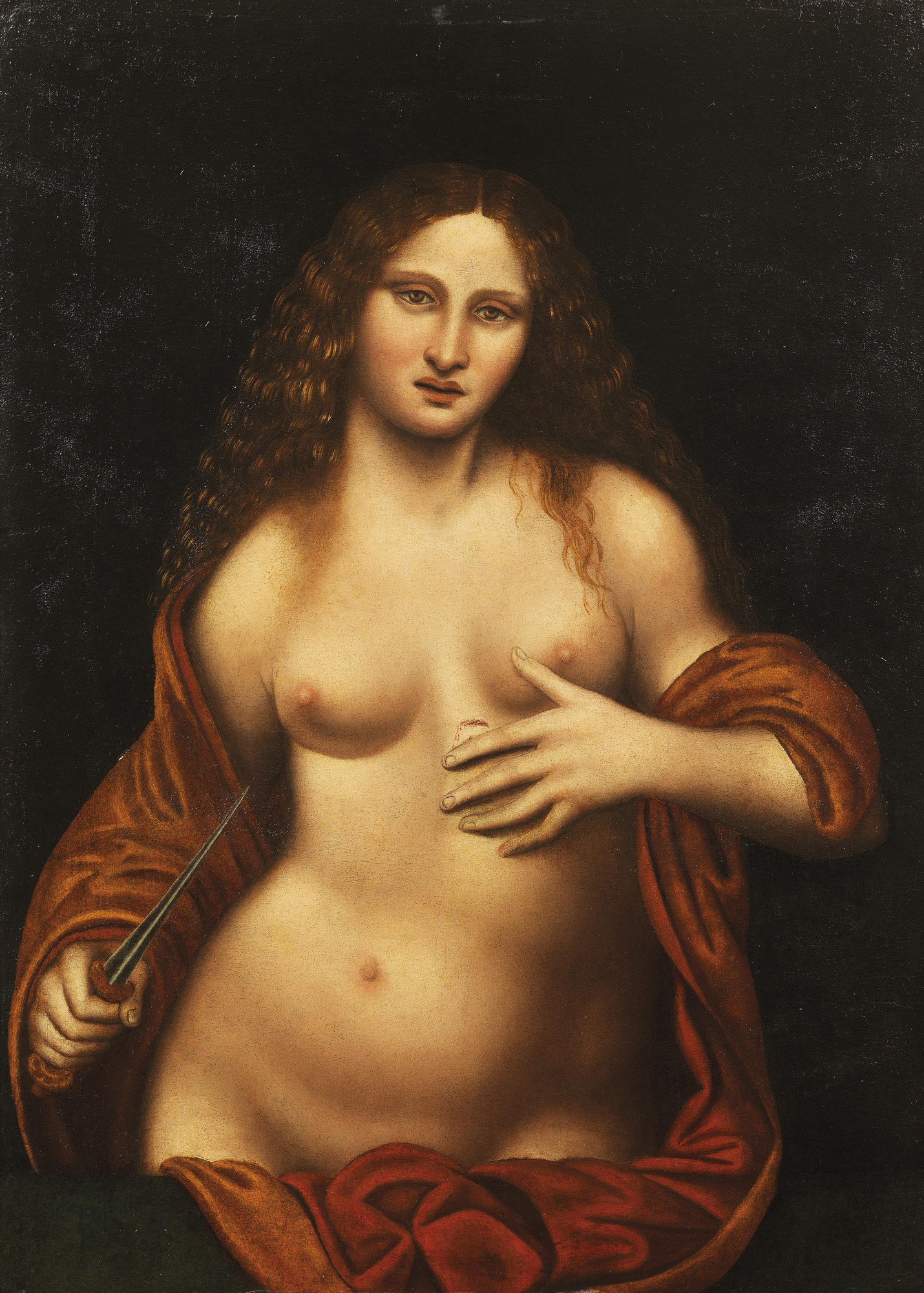 Entrando nel dettaglio partiamo da SAN GIACOMO APOSTOLO, una tempera e oro su tavola di Francesco de’ Franceschi, documentato a Venezia tra il 1443 e il 1456 che è offerta a 20.000/25.000 euro (lotto 14), poi IL SUICIDIO DI LUCREZIA, un olio su tavola di Scuola leonardesca, prima metà del XVI secolo, che ha una stima di 10.000/15.000 euro (lotto 32), PAESAGGIO CON PESCATORI un olio su tela dipinto dal veneto Marco Ricci anche lui stimato 10.000/15.000 euro (lotto 121), ancora per il Seicento in catalogo troviamo, con una valutazione di 25.000/35.000 euro, il SAN LUCA di Giuseppe di Guido detto il Maestro di Fontanarossa, documentato a Napoli nel quarto decennio del secolo (lotto 122).
