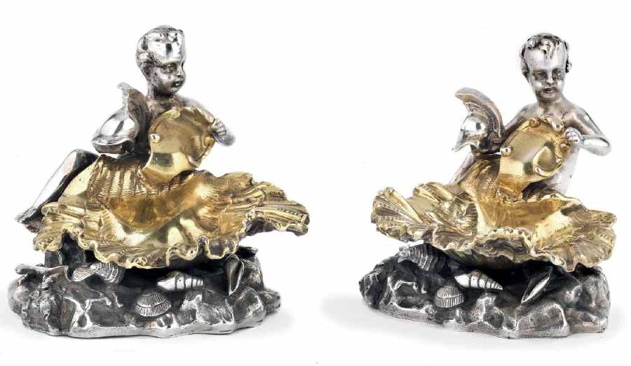 L’argento di Belli proviene da una collezione fiorentina alla quale appartengono anche tre coppie di monumentali saliere, due create da Jean-Baptiste-Claude Odiot, l’argentiere parigino per eccellenza nel periodo napoleonico; in una coppia la saliera è rette da una figura femminile alata inginocchiata su base rettangolare, nell’altra è dorata e poggia su una base rocciosa, entrambe sono stimate 3.000/4.000 euro. È, invece, di 2.500/3.500 euro la richiesta per la terza coppia, in cui la conchiglia porta sale è sorretta da una figura di putto con coda di pesce, realizzata del fiorentino Scheggi, uno degli orafi più importanti della città gigliata.