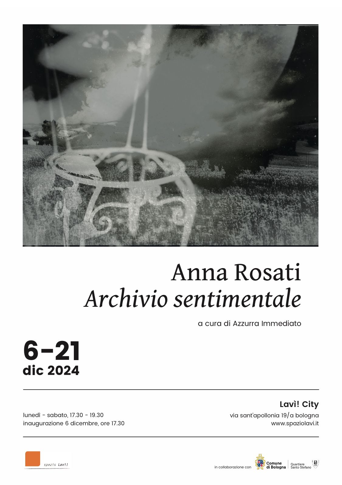 Cos’è, davvero, un archivio sentimentale? Come nasce? Come si scopre ed attraversa? Tramite il dischiudersi di una silenziosa esplorazione, in cui l’immagine fotografica si propone quale abbecedario e guida di scoperta, sguardo che conduce alla trasposizione di una memoria soggettiva in un giaciglio mnemonico che accoglie ed abbraccia, scardinando i limiti personali per farsi legame condiviso. Un percorso che Lavì! City, scrigno custode di arte, propone non come mero incontro con un progetto fotografico, ma un dialogo poetico tra il visibile e l’invisibile, tra la memoria e l’effimero. La Rosati, partendo dalle sue amate terre marchigiane, luogo natio di suo padre e che, da anni, sta ricostruendo secondo una trama fotografica, crea un tessuto narrativo intriso di suggestioni che si snodano tra il passato e il presente, tra la concretezza del paesaggio e la sua evanescente trasfigurazione. Le opere, che si fanno architettura site specific per la galleria, non si limitano a rappresentare una realtà fenomenica, diventano frammenti di un diario visivo che trascende il tempo lineare per immergersi in una dimensione ciclica, fluida, simile a quella del sogno. (Azzurra Immediato)