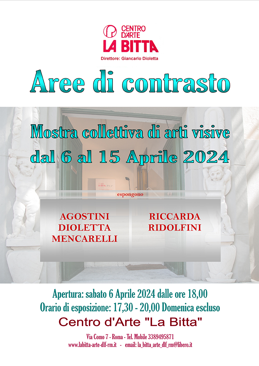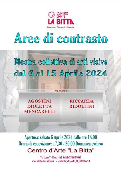 Con la mostra collettiva di arti visive " Aree di contrasto " si mette in evidenza la varietà dei toni che rende l'immagine immersa in una progressione di luci e di colori tali da dare l'impressione della profondità e della prospettiva.
