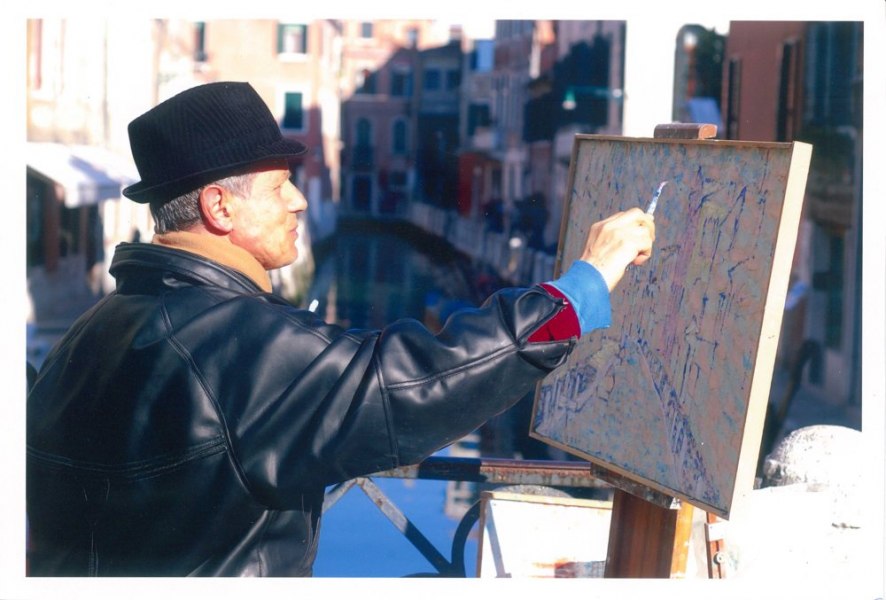 È un ottimista per natura, come sanno esserlo coloro che sono passati attraverso l’amaro tunnel della vita. Lui ama dire: “Quando dipingo dimentico tutto”. E aggiunge: “Sono nato pittore e altro oggi non saprei o vorrei fare”. Egli sa che la sua intima soddisfazione è quella di realizzare un buon quadro, magari dopo tanti strenui tentativi. Dipingere per ore e ore sotto il solleone o al gelo, con una pervicacia che potrebbe apparire esagerata, è per lui la vita. Ecco perché le sue vedute veneziane ci vengono incontro con un messaggio di fede; e si sa che la fede non nasce sui morbidi cuscini della comodità. È una conquista lenta, faticosa.