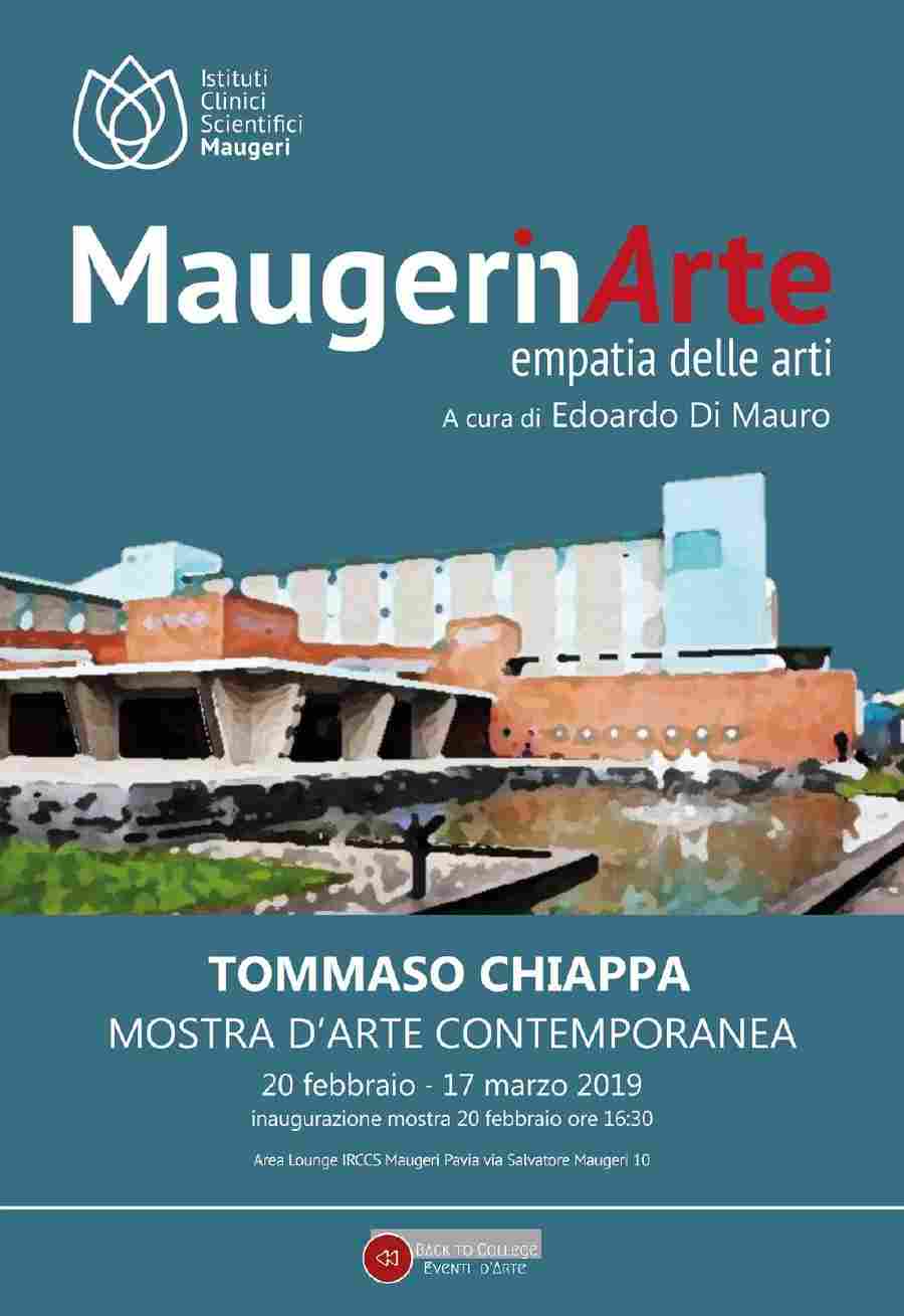 Dal 20 febbraio al 17 marzo l'area lounge dell'IRCCS Maugeri di via Salvatore Maugeri 10 ospiterà una mostra di dipinti di Tommaso Chiappa. La personale sarà inaugurata mercoledì 20 febbraio alle ore 16.30 alla presenza dell'artista e dei dirigenti dell'Istituto e potrà essere visitata tutti i giorni negli orari di apertura della struttura sanitaria.