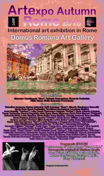 Si inaugura sabato 27 ottobre alle ore 18 la grande rassegna artistica internazionale a Roma "Artexpo Autumn Rome 2018", presso il meraviglioso spazio della Galleria Domus Romana https://www.domus-romana.it in Via Quattro Fontane, 113 00184 Roma tra Piazza di Spagna e la Fontana di Trevi, in centro storico di Roma.