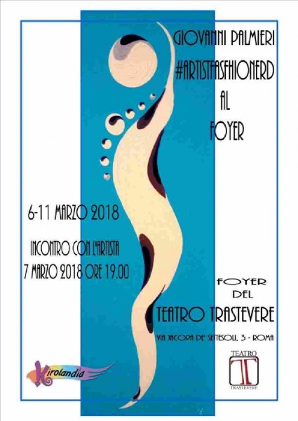 In occasione della settimana di spettacoli dedicati alla festa della donna il pittore Giovanni Palmieri nell'esposizione pittorica #ARTISTFASHIONERD al FOYER mostra al pubblico alcune delle sue tele all'interno del ridotto del TEATRO TRASTEVERE di Roma.