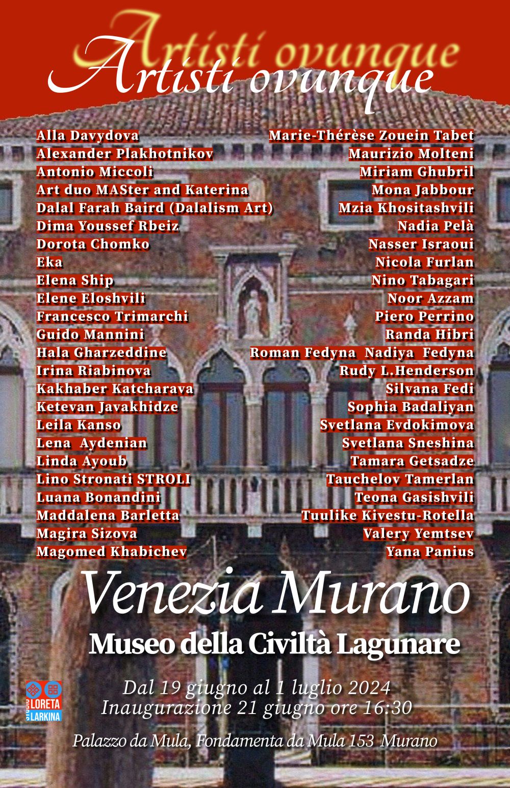Le prestigiose sale di Palazzo da Mula a Murano ospitano la mostra d’arte contemporanea “ Artisti ovunque “
