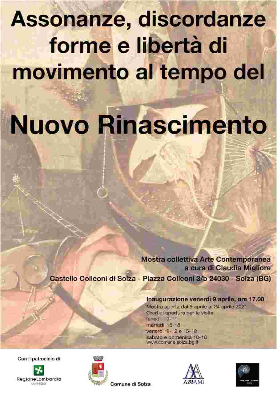 La mostra “ Assonanze, discordanze, forme e libertà di movimento al tempo del Nuovo Rinascimento “ vuole mettere in risalto uno spaccato di arte contemporanea, ben rappresentata da artisti di ottimo livello, sia italiani che stranieri.