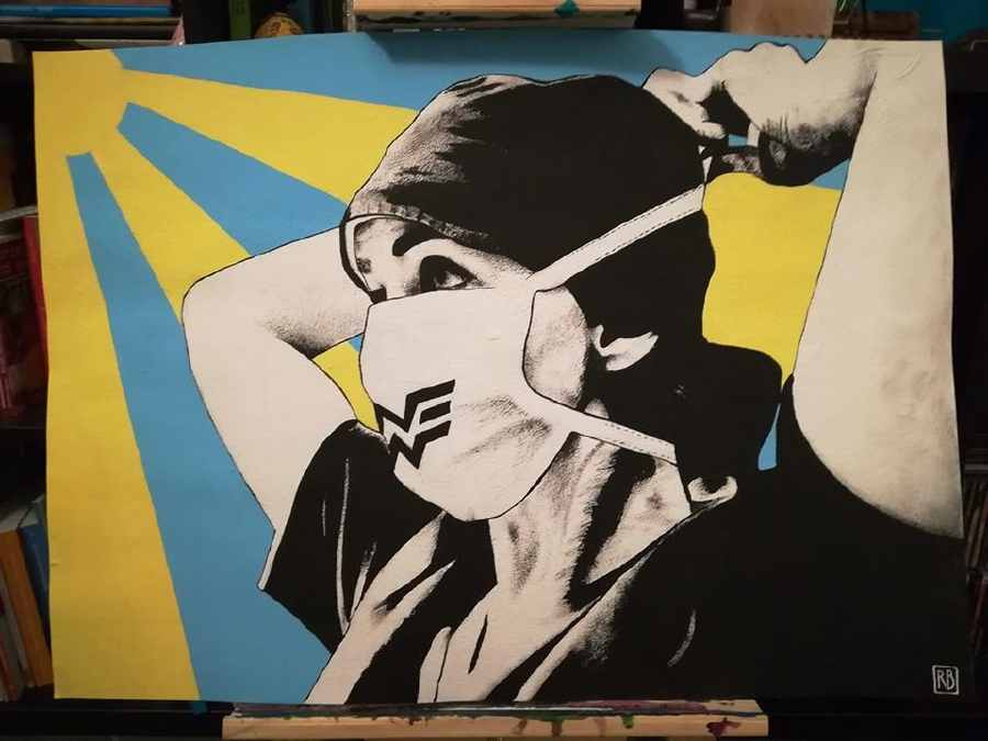 Il primo a inaugurare l’iniziativa è stato Riccardo Buonafede, celebre street artist ferrarese organizzatore di Manufactory Project di Comacchio (FE). Come ha commentato l’artista: “Oggi non sono solo medici e gli infermieri ad essere in difficoltà, lo sono anche le famiglie e i lavoratori. Noi siamo partiti da qui. Quest'opera non rappresenta solo un medico, rappresenta una donna che si sta preparando per fare il suo lavoro, come tutti i giorni, ma con la paura di compromettere la sua salute e quella della sua famiglia che l'aspetta a casa. Una donna che spera di non vedere troppe persone soffrire o morire ogni giorno. Se è vero che l'artista dipinge ciò che vede, questo è quello che io vedo oggi". L’opera dal titolo “Super Heroes” se l’è aggiudicata Charly Pub del Lido delle Nazioni e il ricavato andrà interamente devoluta all’Ospedale del Delta di Lagosanto (FE).