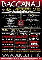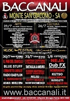 Arte, cultura e musica sono le tre muse ispiratrici della rassegna politematica Baccanali edizione 2017 che si svolgerà a Monte San Giacomo nella splendida cornice del Parco Nazionale del Cilento e Vallo di Diano. La rassegna si apre a Palazzo Marone Domenica 23/7 alle ore 18:00 con l"inaugurazione della mostra d'arte contemporanea curata da Gianluca Cavallo e denominata " Medusa Riflessioni ". L’evento vede come protagonisti gli artisti: Melinda Borysevicz, Gianluca Cavallo, Arturo Ianniello e Natalia Ponton. Il 24 Luglio alle 18:00 ci sarà, sempre a Palazzo Marone, un interessante convegno dal titolo "L’Universitas Civium nell’Italia meridionale: tra storia medievale e moderna". L'intera rassegna culturale si svolge durante il periodo dell'anno più festoso del borgo sangiacomese e prevede, tra le varie attività alcune passeggiate alla scoperta di piccoli ma interessanti luoghi. Dopo i giorni di festa per i Santi Patroni del borgo, il 30/7 iniziano tre serate di Music Festival nella Villa Comunale “Enrico Quaranta” che ospiterà grandi nomi a livello nazionale come Neja e il Pan del Diavolo e band internazionali come Dub Fx che farà a Monte San Giacomo la prima ed unica tappa del Sud Italia. Si chiude il 16/8 con il finissage della mostra d'arte.
