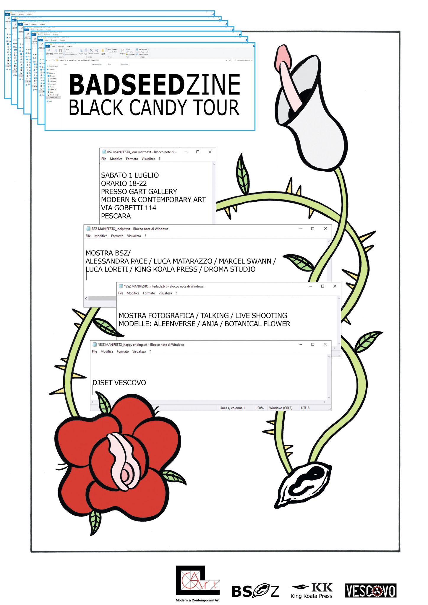 Sabato 1 luglio 2023 Gart Gallery Modern & Contemporary Art presenta BadSeedZine Black Candy Tour: i fondatori del collettivo BadSeedZine, Alessandra Pace, Luca Matarazzo e Marcel Swann, ognuno con il suo stile e la propria personale ricerca sulla fotografia erotica, si incontrano a livello espositivo per portare avanti il racconto dei nostri corpi, forti di diversità e vulnerabilità.