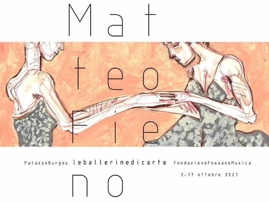 In occasione della fine dei lavori di ristrutturazione del prestigioso conservatorio di Fossano, la Fondazione Fossano Musica ospiterà dal 2 al 17 ottobre 2021 una personale dell’artista Matteo Fieno, conosciuto come L’artista delle donne per la sua particolare attenzione al mondo femminile; la mostra, intitolata Le ballerine di carta, prevede l’esposizione di nove opere su carta realizzate con tecnica mista tra il 2018 ed il 2020. Il tema delle ballerine è molto caro all’artista, che declina le sue danzatrici ora in versione rock, ora in versione classica, con una maniera artistica riconducibile ai grandi maestri dell’arte moderna, ma dalla poetica fortemente contemporanea. I nove disegni che compongono la mostra, sono un inno alla sensualità ed all’eleganza resa maggiormente preziosa dallo sprigionarsi nel compiere azioni quotidiane; l’estrema semplicità dei gesti narrati, spingono lo spettatore ad immedesimarsi ed a voler conoscere le storie delle ballerine che dialogano fra loro in un percorso corale che le porta sulla strada della maturità e della conoscenza di sé, non senza i relativi timori che questo comporta.