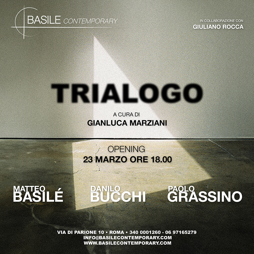 Sabato 23 marzo 2024 alle ore 18.00, la Basile Contemporary inaugura la grande mostra collettiva “TRIALOGO” che vedrà protagoniste le opere di tre illustri artisti del panorama dell’arte contemporanea italiana: Matteo Basilé, Danilo Bucchi e Paolo Grassino.