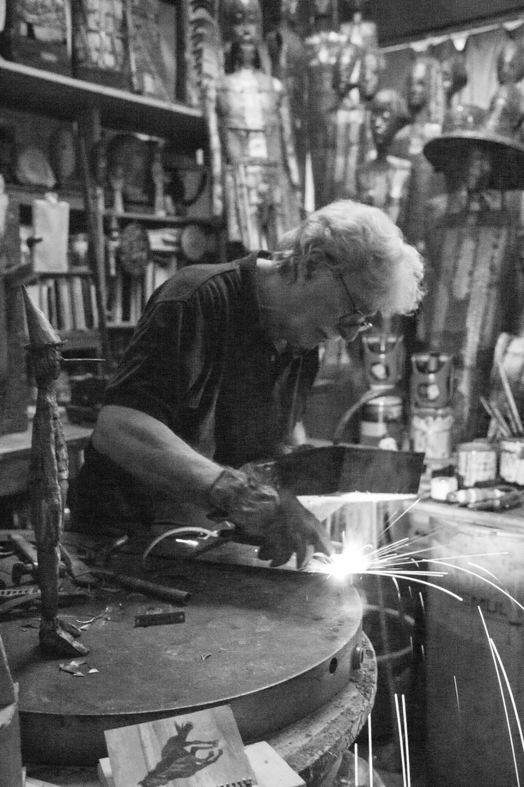 Luciano Navacchia vive ed opera a Cesena dove è nato nel 1946. Attivo come pittore a partire dalla fine degli anni ’60 nel fervido ambiente artistico cesenate, Navacchia ha maturato un suo personale linguaggio espressivo nell’ambito della nuova figurazione italiana. Allestisce la sua prima mostra personale a Rimini nel 1969. La sua pittura, inizialmente, è influenzata dalla dominante realista della cultura figurativa cesenate, affrontando temi d’impegno sociale e riguardanti la condizione esistenziale dell’uomo nella realtà del suo tempo, con un linguaggio pittorico di marca espressionista, dai tratti cupi ed esasperati. Agli inizi del 2010 Navacchia ha avviato un percorso del tutto originale come scultore, rinnovando il proprio successo con mostre antologiche in ambito emiliano romagnolo. A Cesena una sua opera è presente alla Biblioteca Malatestiana e una nella Sede di Cesena Fiere. Inoltre due sculture di grandi dimensioni sono conservate a Pieve di Cento al Museo Magi 900’. Tra i più interessanti cicli tematici di Navacchia scultore sono da considerare quelli che ripropongono le antiche civiltà mediterranee a confronto con la realtà odierna e nei quali specialmente la figura della donna assume un ruolo dominante come valenza totemica, simbolica, allegorica del procedere della nostra civiltà fino alla più stretta attualità. L’interesse della critica ha riguardato sia il particolare metodo officinale adottato dall’artista mediante l’assemblaggio e la lavorazione di elementi metallici di recupero, sia i soggetti affrontati, fra i quali anche quelli inerenti la cosiddetta Arte Sacra. Tra le mostre personali e collettive se ne annoverano in 50 anni di carriera oltre 300, tra le quali vanno menzionate, Bari, Caserta, Mantova, Monza, Padova, Roma, Savona, Venezia, quelle in numerose città siciliane e in diverse capitali europee.