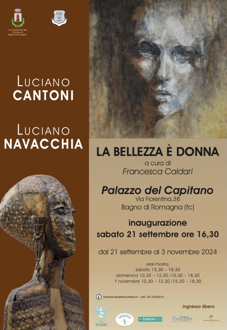 Palazzo del Capitano ospita come terzo appuntamento espositivo di Bagno d’Arte la mostra “La bellezza è donna” opere di Luciano Cantoni e Luciano Navacchia, promossa e patrocinata dal Comune di Bagno di Romagna e curata da Francesca Caldari.