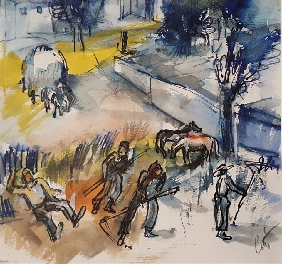 La rassegna, realizzata da LottiArt di Daniele Lotti e Lauretta Scicchitano Lotti, con il patrocino del Comune di Bellagio, in collaborazione con L’Associazione culturale Torre delle Arti, si apre con l’Arte e i mestieri del ‘900. Grandi spazi aperti sono descritti da Lotti con pennellate morbide e sfumate che creano atmosfere dal sapore sospeso in cui il lavoro scandisce i ritmi delle giornate come in Chioggia, acquerello del 1950 dove si riconosce un gruppo di pescatori al lavoro sul molo, oppure Contadini, 1940 o la preziosa china del 1952, Le Mondine, dove le figure, rese con pochi tratti sapienti, narrano la gestualità naturale e la semplicità che caratterizzano la vita rurale del tempo.