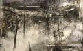 Nella serie esclusiva di 10 opere verticali che vogliamo definire per soggetto, bianchi periferici, allestite come una serie di frame cinematografici una accanto all’altra, l’equilibrio di forze della natura è il filo conduttore, dove la morsa della neve scesa dall’alto, si contrappone alla forza ascensionale della rigenerazione della vita e degli alberi. La morsa della neve non è meno potente della forza della materia, dove la pittura è macerata, rigirata e impastata direttamente sulla tela, che si contrappone alla linearità della carta inserita come se fosse materia pittorica.