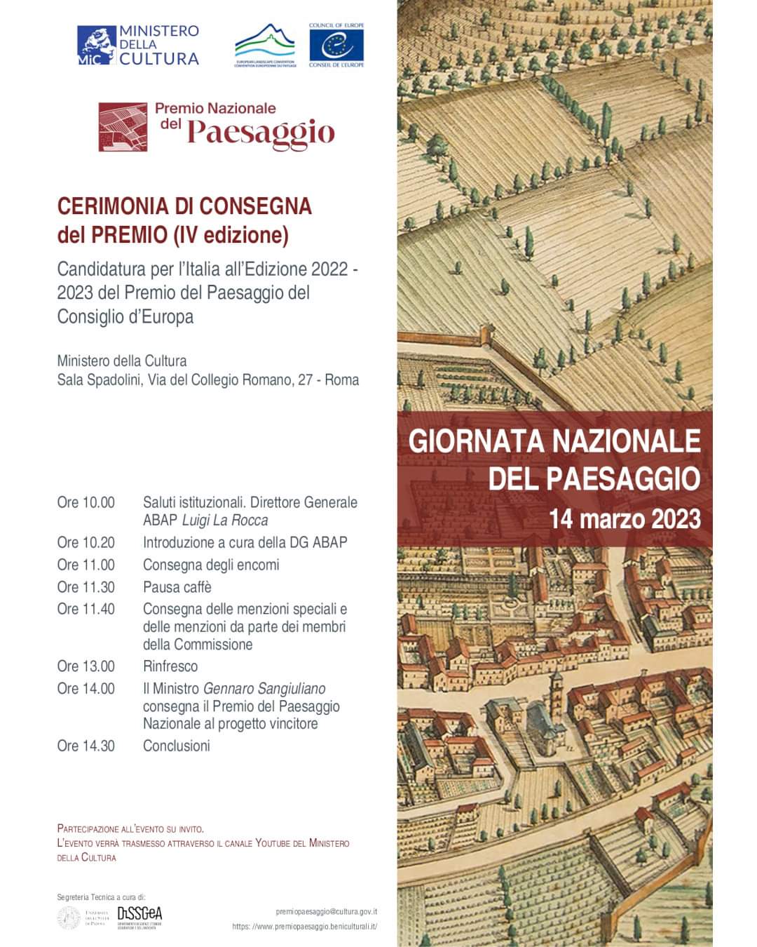 La cerimonia di premiazione si è svolta martedì 14 marzo 2023, a Roma, nella Sala Spadolini, alla presenza del Ministro della Cultura, in occasione della Giornata Nazionale del Paesaggio.