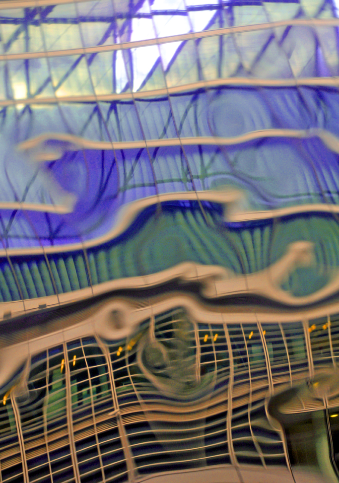 Il suo soggetto principale sono le architetture. E la sua arte è soprattutto una ricerca della sintesi, delle forme essenziali, delle combinazioni geometriche prodotte dalle sovrapposizioni e intrecci di strutture architettoniche che popolano le nostre città. Non gli interessano gli edifici in sé, né la realtà percepibile a prima vista. Lui si concentra su linee, intersezioni, combinazioni di forme. Per questo cerca prospettive particolari, punti di vista inconsueti, angoli e scorci visuali dai quali le architetture si mescolano in un dialogo di linee, forme, contrasti di luci e colori che assume un significato quasi biologico.