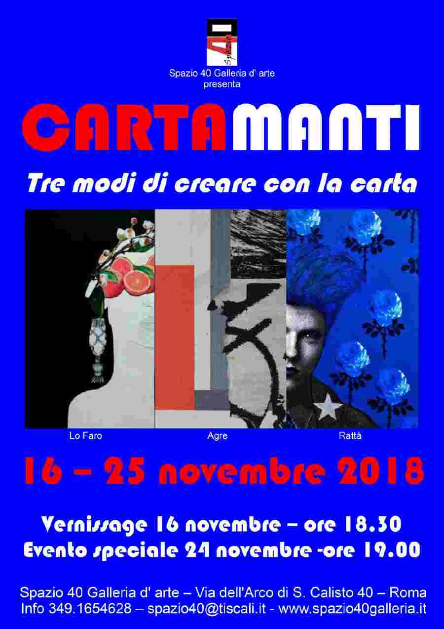 Spazio 40 Galleria d'arte organizza una tri-personale che vedrà protagonisti tre artisti accomunati dall'uso della carta nei loro lavori: Valentina Lo Faro, Eugenio Rattà, Antonio Agresti aka Agre.