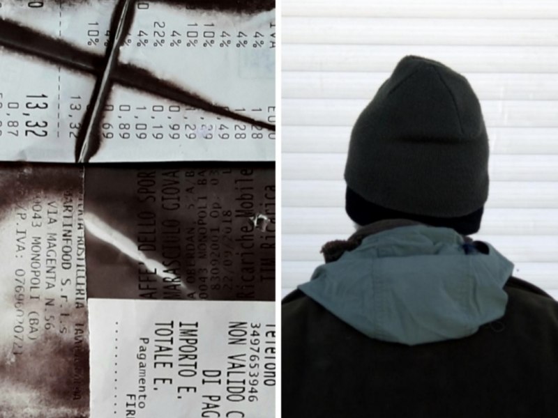 Chiara Bevilacqua presenta l'installazione site specific 005. Sono circa 10.000 gli scontrini che ricoprono le pareti laterali, il soffitto e il pavimento del box e che vengono incisi, infiammati, anneriti e sbiancati per mezzo di un semplice accendino, il cui utilizzo rievoca il ricorso alle tecniche tradizionali dell’incisione, linguaggio d’elezione per l’artista. Con l’intervento ambientale, la maniacale disposizione dei minuscoli documenti fiscali invita a riflettere su come ogni uomo sia costantemente immerso nella matrice economica e finanziaria che condiziona l’ambiente. La conta – quella monetaria, quella quotidiana dei consumi e degli indici di borsa – si trasforma nell’ossessione totalizzante di un’ecologia del numero e della spesa.