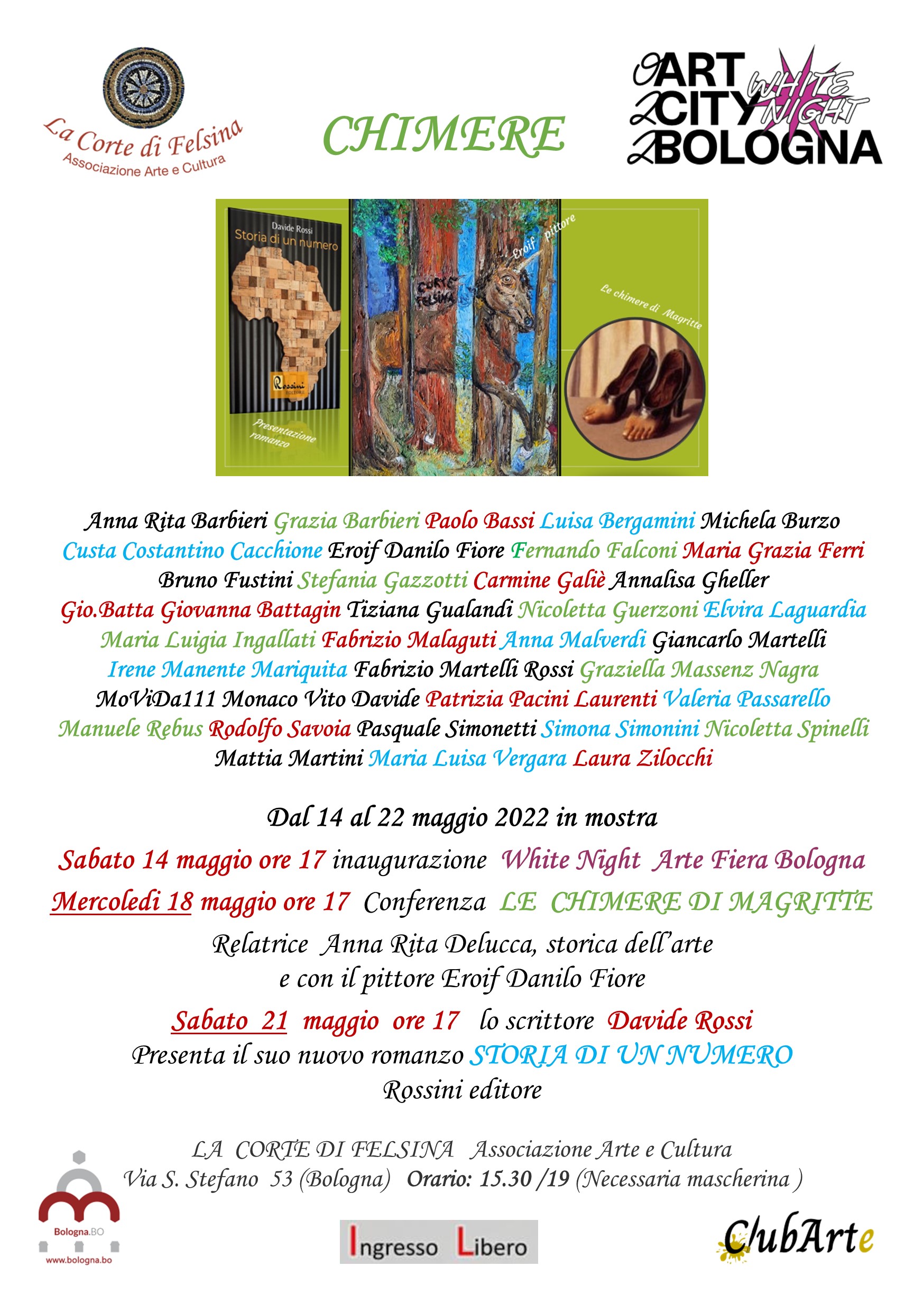 In questa esposizione di dipinti, grafica fotografia, scultura, digital art, gli artisti interpretano ed esprimono attraverso la loro libera creatività il tema della chimera, l’effimero, l’illusorio, il sogno e l' irrealtà.