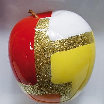 La tecnica si è evoluta ed oltre alla forma anche la varietà cromatica contribuisce al carattere di unicità dell’oggetto ottenuto: così la mela, nata come complemento dei miei quadri scacchiera, diventa fine a se stessa e strumento con cui declinare artisticamente al meglio un materiale controverso”.