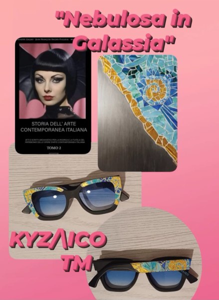 Lo spazio in cui opera Cinzia non è solo quello della creazione dell’oggetto unico in quanto tale ma è un proiettarsi continuamente in ambiti sospesi tra arte figurativa (i suoi mosaici), la pittura e il disegno di oggetti preziosi come, ad esempio, la serie di occhiali ” KYZAICO”, la cui foggia e forma sfugge a ogni classificazione industriale: l’occhiale è sempre un pezzo di cielo, è un prezioso supporto che rende felici e migliori le persone ed è questo a cui Cinzia pensa durante la sua creazione.