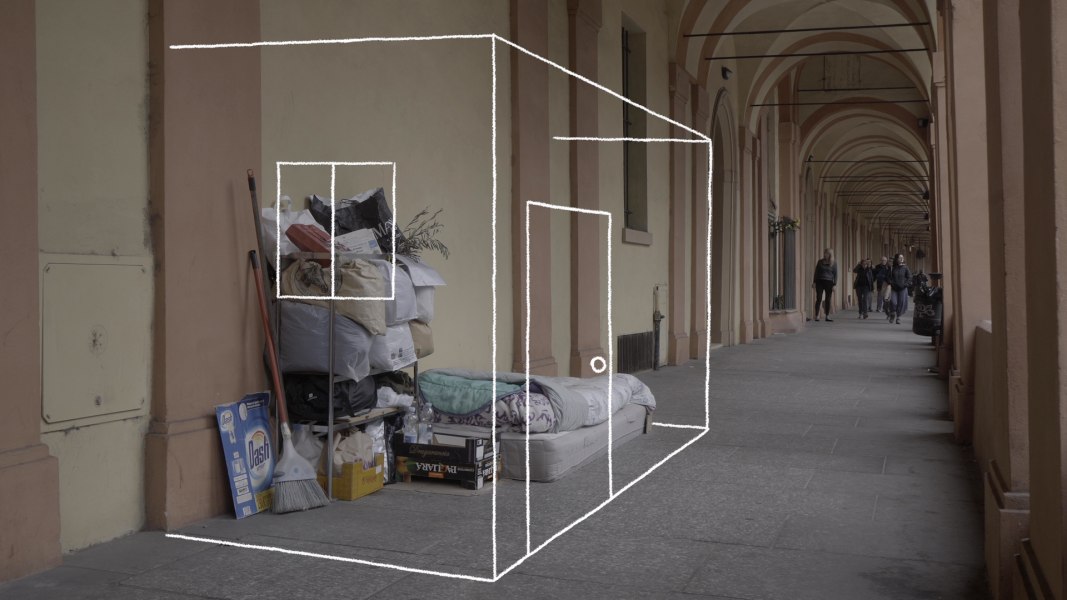 Il film, attraverso la voce narrante dello scrittore Ermanno Cavazzoni, racconta una città parallela e poco visibile popolata da persone che non hanno una casa. La voce scruta e commenta con discrezione questa popolazione coi loro giacigli precari dalle pareti invisibili e forse solo immaginate. L’avvicinamento progressivo dello sguardo ci permette di varcare la soglia di queste stanze virtuali, dove le vite di chi ci abita vengono suggerite più che raccontate. Immagini domestiche si alternano evocando vite sognate di una quotidianità perduta o forse solo desiderata. Documentare l’inconsistenza delle poche cose di cui questa popolazione si circonda, dare concretezza all’invisibile, è ciò che LA CITTÀ DI CARTONE vuole raccontare.