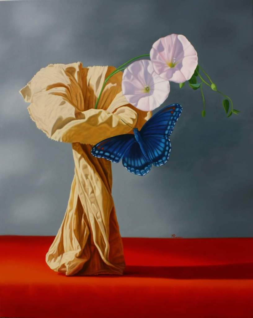 Di tutto riguardo anche il suo bagaglio critico con nomi di rilevanza nazionale: Elda Fezzi, Mario Monteverdi, Giorgio Mascherpa e poi l’indimenticabile Mario Ghilardi, il mio più stretto collaboratore degli anni settanta e ottanta. Nomi che hanno lasciato una traccia indelebile e che, con le loro critiche e i loro saggi, hanno profondamente inciso sul percorso dell'arte moderna e contemporanea. Nel corso della sua lunga e intensa attività, Isabella d'Ortona ha senza dubbio sentito il fascino e l'attrazione dell'Espressionismo tedesco, di nomi come Schiele, Munch, Ensor, Nolde e poi del nostro Realismo Esistenziale, ma questa volta la sua espressione sembra essersi placata, ammorbidita, si è fatta più intima e raccolta trovando al proprio interno nuova forza ed energia, nuovi stimoli e argomenti per reagire positivamente al grave disagio della solitudine e dell'isolamento imposto dalla pandemia. Ora Non troviamo più la rappresentazione cruda e quasi violenta della realtà, nè le drammatiche visioni dei suoi corpi dilaniati e corrosi dalla monotonia del quotidiano, ma tutto viene rivisto e re-interpretato sotto una nuova luce ed una nuova veste: gli occhi dell'artista si soffermano sulla natura, sul cielo azzurro e profondo, sul volo libero dei gabbiani alla disperata ricerca di libertà e aria pura. Bellissime e fortemente coinvolgenti le due opere che l'artista presenta in questa mostra, un invito alla positività e alla speranza.