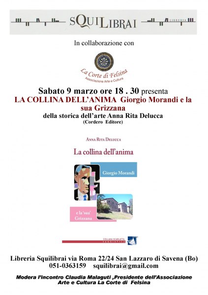 Sabato 9 marzo 2019 alle ore 18.30 la libreria Squilibrai in collaborazione con La Corte di Felsina presenta il saggio di Anna Rita Delucca ‘La collina dell’anima –Giorgio Morandi e la sua Grizzana.