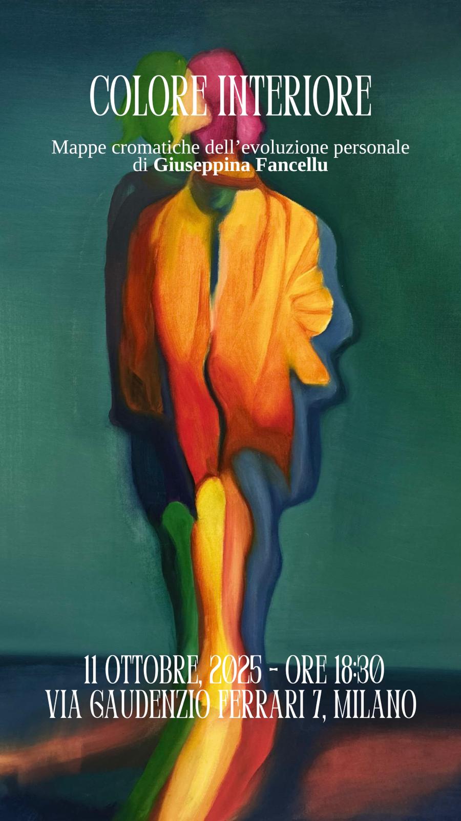 L’11 e il 12 ottobre 2025, gli spazi espositivi di via Gaudenzio Ferrari 7 a Milano ospitano Colore Interiore: mappe cromatiche dell’evoluzione personale, mostra dell’artista Giuseppina Fancellu. Un titolo che racchiude il senso profondo di questo percorso visivo e introspettivo: una mappa intima che si snoda su due nuclei principali di opere, distinti nel linguaggio e nel tono, ma profondamente interconnessi, capaci di esplorare la condizione umana con sguardo lucido e visionario attraverso l’uso dei colori ad olio.