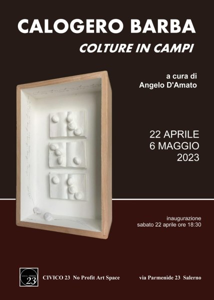 Sabato 22 aprile 2023 alle ore 18.30 lo Spazio Civico 23 inaugurerà una personale dell'artista Calogero Barba. Il titolo scelto per la mostra salernitana "Colture in campi" definisce l'operato dell'artista attraverso una ricerca che, in prima istanza, appare scandita da tre passaggi necessari alla "gestione delle colture/culture", appunto: