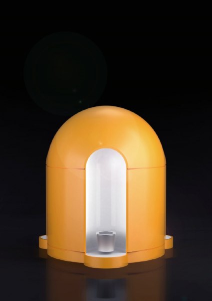 Inoltre per l'occasione, Caparol ha realizzato alcuni prototipi di sgabelli, sempre in Dalmatiner, colorati con il Top Lasur NQT. Il Dalmatiner, tradizionale materiale isolante Caparol, assume una nuova funzione e un aspetto insolito grazie alla possibilità di sperimentazione concessa da un progetto come Continental Breakfast.