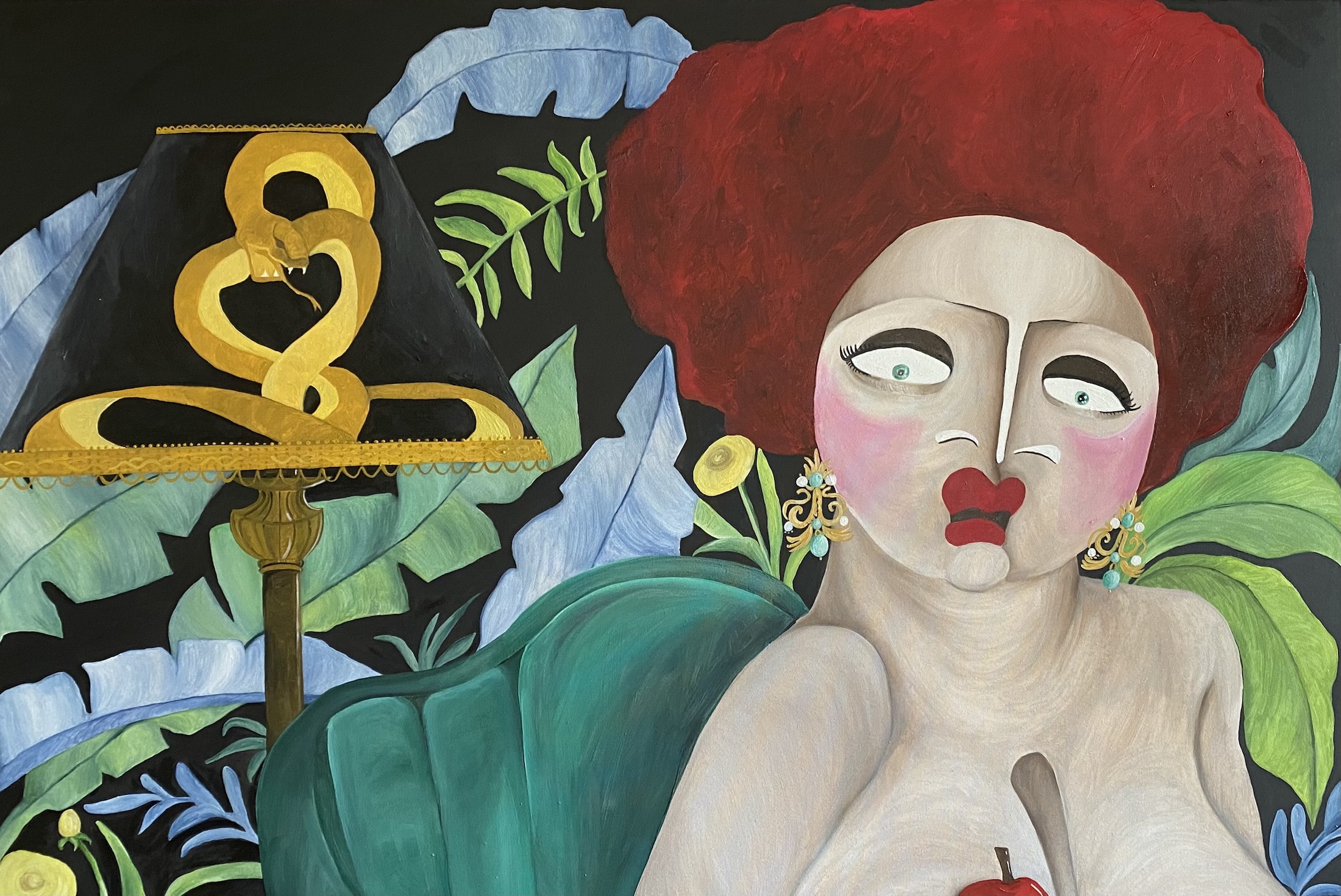 Nelle opere di Antonio assistiamo ad un immaginario divertito e divertente popolato da donne d’altri tempi, regine e sante, vivacizzato da un’ironia lirica e pungente in una figurazione che segue un suo sentiero dove l’immagine è adoperata per dare vita ad una nuova modalità espressiva.