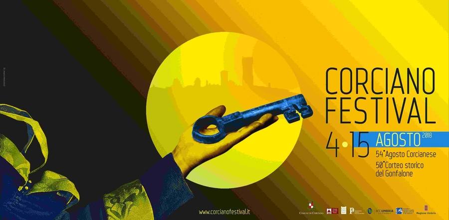 Numerosi i concerti in programma tra i quali quello del virtuoso trombettista, compositore e direttore d'orchestra Allen Vizzutti, accompagnato dalla Corciano Festival Orchestra; il concerto-spettacolo del cantautore e attore David Riondino con “La Buona Novella” di Fabrizio De Andrè, sempre accompagnato dall’Orchestra; i Billi Brass Quintet con uno show tra cinema e musica dedicato alla Luna. Ascolteremo il pianista e compositore umbro Ramberto Ciammarughi accompagnato dalla voce recitante di Eugenio Allegri e l’emozionante concerto finale del Festival sarà dedicato a Gioacchino Rossini in occasione dei 150 anni dalla sua morte. E ancora, ampio spazio ai ‘giovani sulla strada del successo’ che ogni sera, dall’11 al 15 agosto, si esibiranno mostrando il loro talento. Per la sezione teatro, torna un’altra regia di Maurizio Schmidt “Sketches & Short Plays” del premio Nobel Harold Pinter, un viaggio dagli anni ’50 ai giorni nostri nei meandri dell’atelier immaginario del grande drammaturgo inglese. Novità di questa edizione la collaborazione con un giovanissimo gruppo teatrale umbro Regalmente ma non troppo (tutti attori under 25) con lo spettacolo “La luna degli attori. Commedia brillante in due atti del drammaturgo americano Ken Ludwig”. La sezione letteraria del Corciano Festival sarà anche quest’anno ricca di appuntamenti di grande spessore. Incontreremo Diego de Silva con il suo nuovo libro Superficie; Carlo D’Amicis, finalista del Premio Strega 2018 con il suo Il gioco; Paola Buzzetti per la presentazione del suo Una ragazza in gamba, inoltre Alvaro Fiorucci e Raffaele Guadagno racconteranno la loro opera Il divo e il giornalista. Ci sarà un incontro per omaggiare il romanziere americano Philip Roth insieme all’americanista e traduttore Luca Briasco, e un progetto originale del Corciano Festival ‘Migranti’ e ‘Umbria’, che vedrà coinvolti alcuni dei migliori scrittori umbri.Tra le esposizioni d’arte: “L’Italia di Mezzo. La Cartografia storica del centro Italia dal XVI al XIX secolo” nella Chiesa-Museo di San Francesco e un progetto espositivo dedicato allo storico Corteo del Gonfalone di cui ricorre quest’anno il cinquantenario.