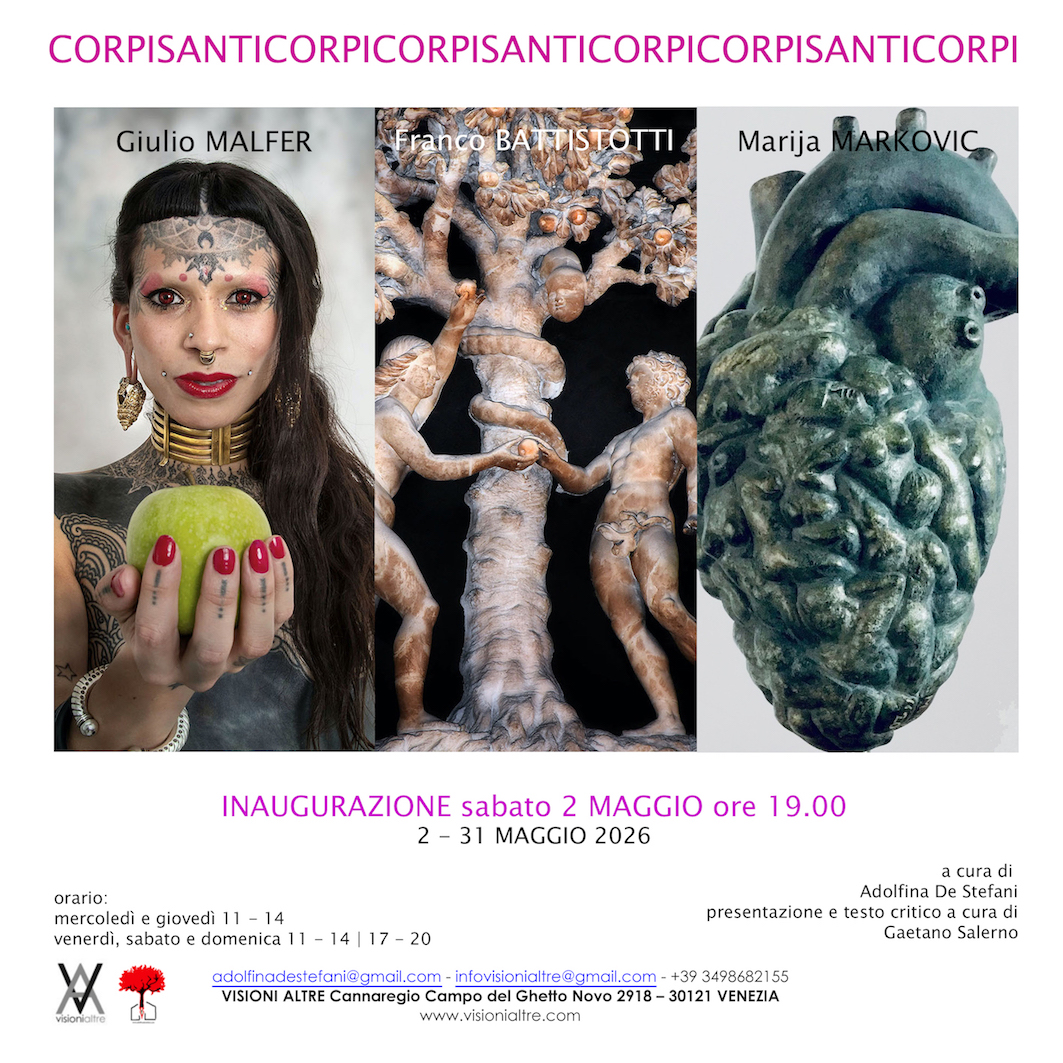 Una riflessione sul corpo - nell’arte e dell’arte - è al centro di quest’ultimo progetto della Galleria Visioni Altre, declinato attraverso il dialogo tra gli scatti fotografici di Giulio Malfer e Franco Battistotti e le sculture di Marija Markovic.