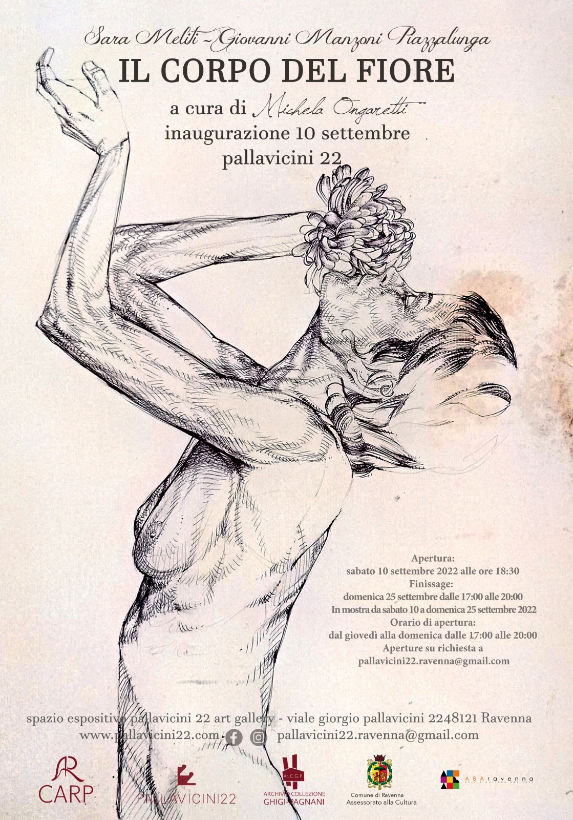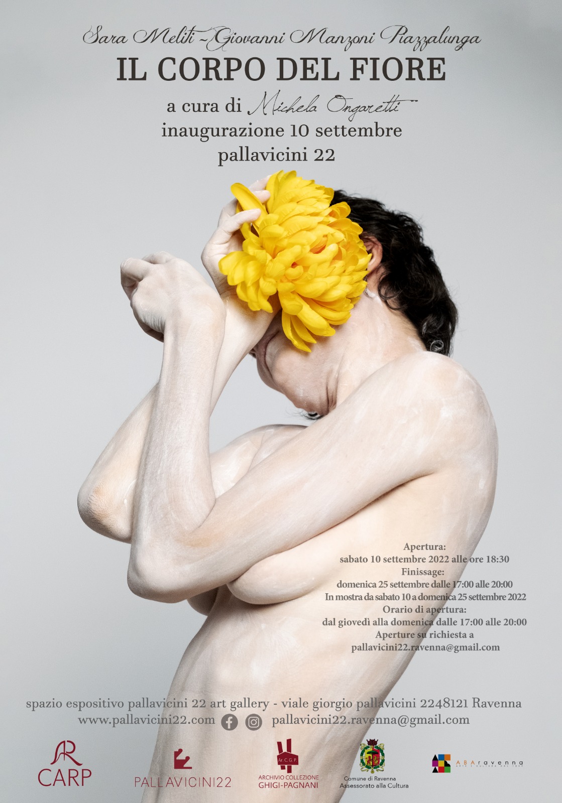 Sabato 10 settembre 2022 alle ore 18:30 presso lo spazio espositivo Pallavicini22 Art Gallery in Viale Giorgio Pallavicini 22 a Ravenna, inaugura “Il corpo del fiore - The body of flower”, una doppia personale di Sara Meliti e Gio Manzoni che rimarrà allestita fino a domenica 25 settembre e sarà aperta al pubblico dal giovedì alla domenica dalle 17:00 alle 20:00. Sarà possibile visitare la mostra anche in altri orari contattando pallavicini22.ravenna@gmail.com