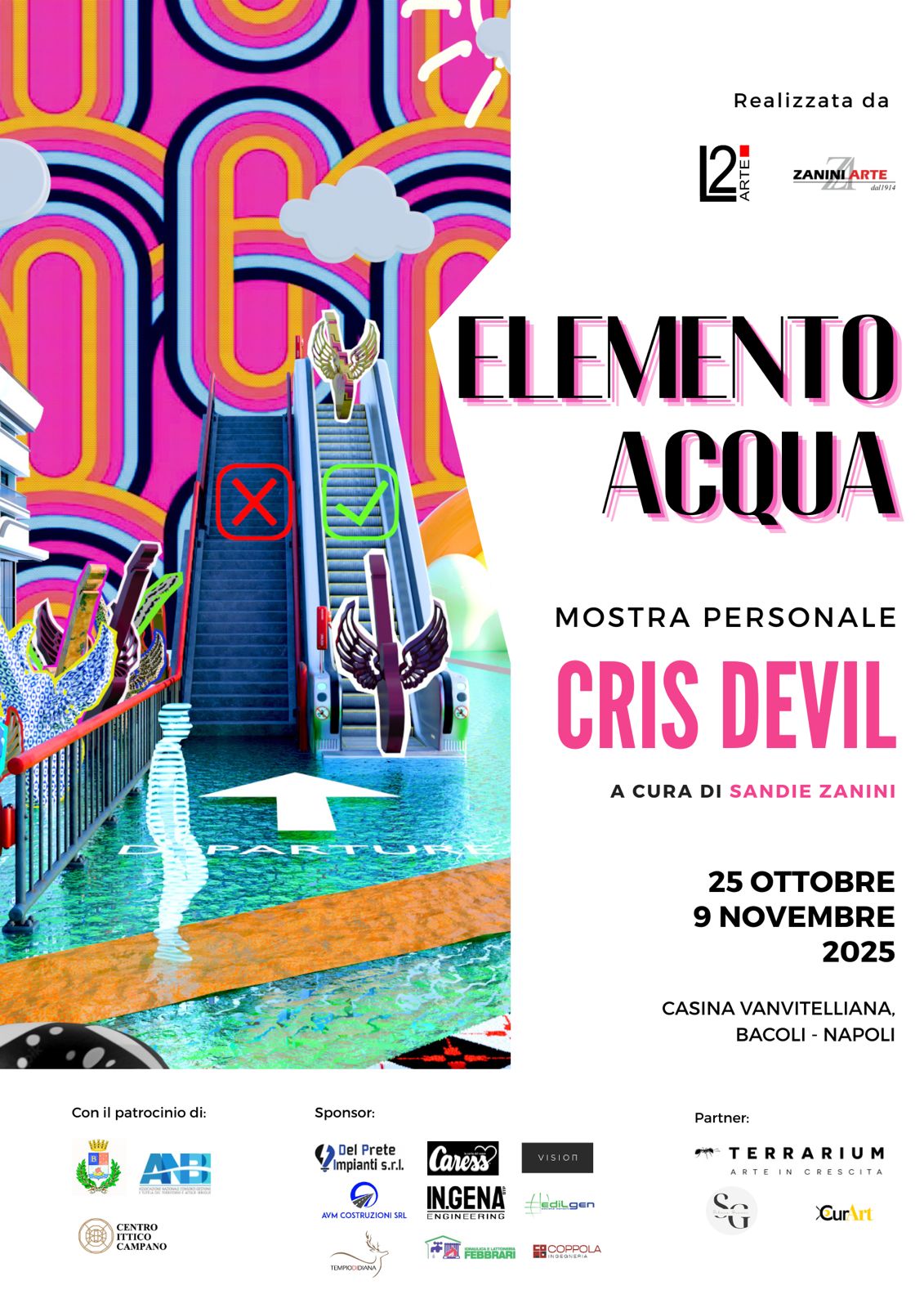 Dal 25 ottobre - 9 novembre 2025 si appresta ad accogliere la mostra personale del celebre artista Cris Devil dal titolo Elemento Acqua, a cura di Sandie Zanini, realizzata da L2Arte e Zanini Arte, con il Patrocinio del Comune di Bacoli, di A.N.B.I. – Ass. Naz. Consorzi, Gestione e Tutela Acque Irrigue – e del Centro Ittico Campano.