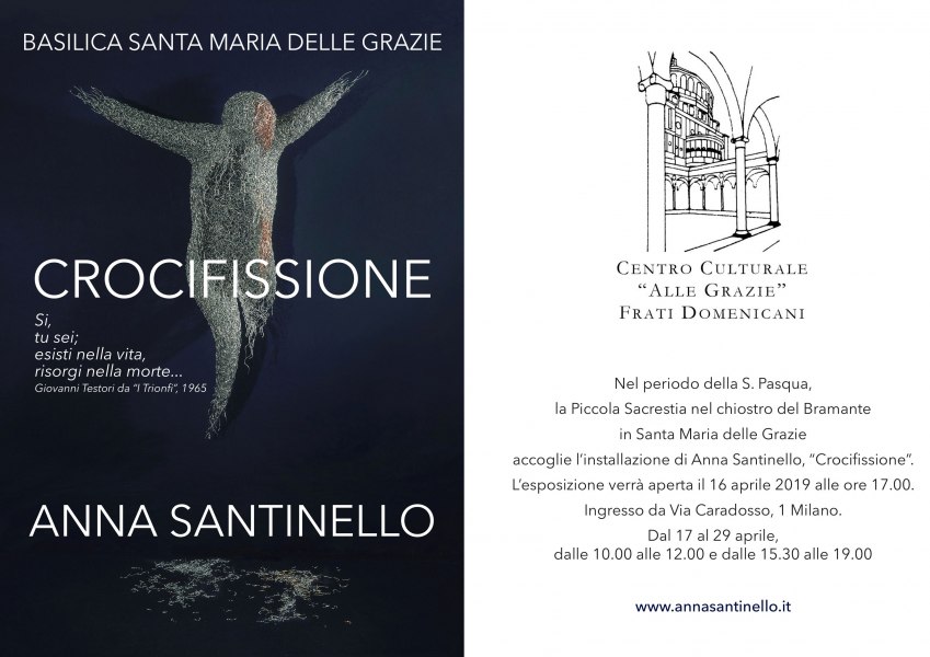 Nel periodo della S. Pasqua, lo spazio espositivo della Piccola Sacrestia nel chiostro del Bramante nella Basilica Santa Maria delle Grazie, accoglierà l’installazione “Crocifissione” di Anna Santinello.