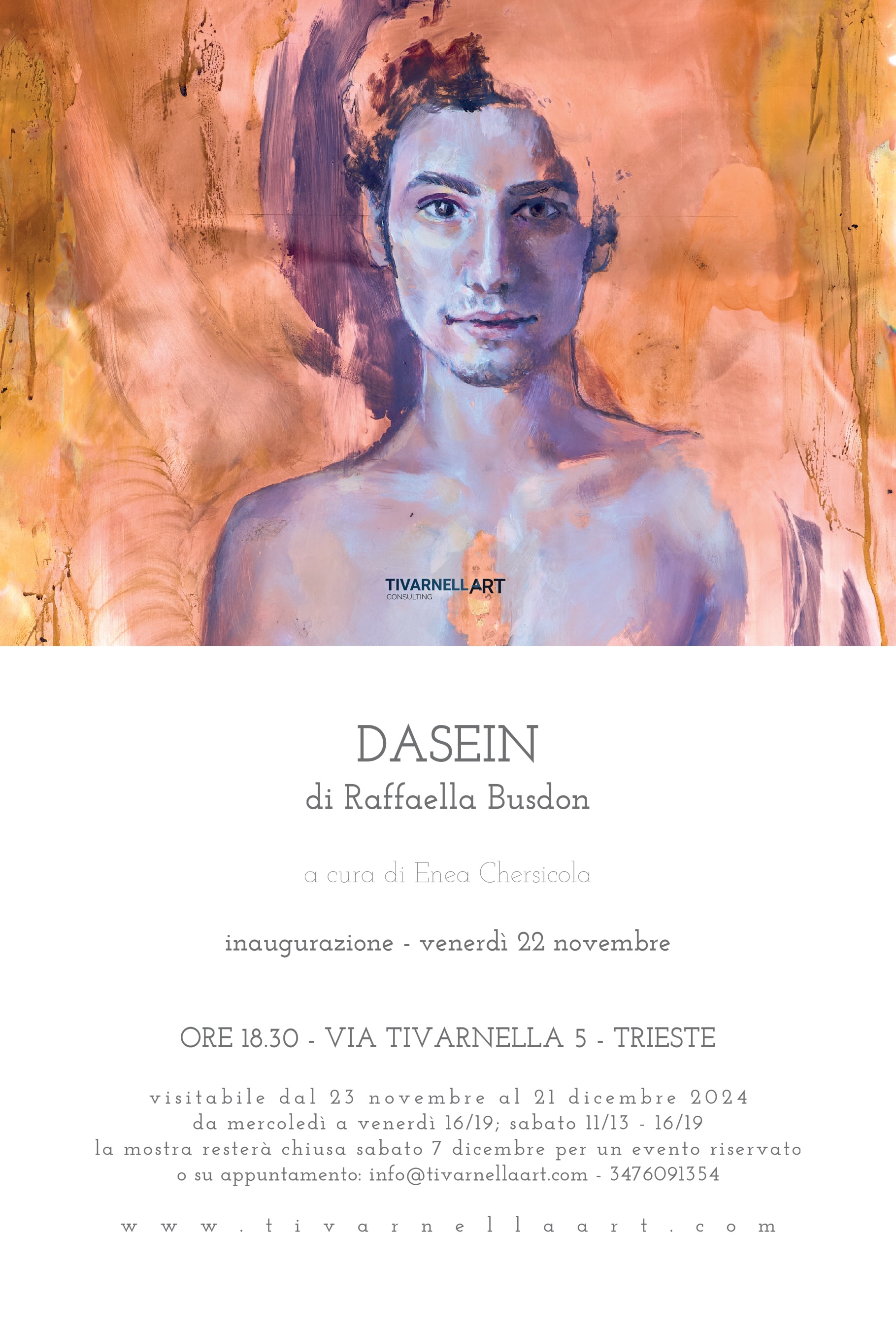 Lo studio di consulenza Tivarnella Art presenta la mostra personale di Raffaella Busdon, che sarà inaugurata venerdì 23 novembre 2024 alle ore 18.30 nella sede di via Tivarnella 5 a Trieste, nel mese in cui lo studio arriva ai sei anni di attività nel capoluogo giuliano.