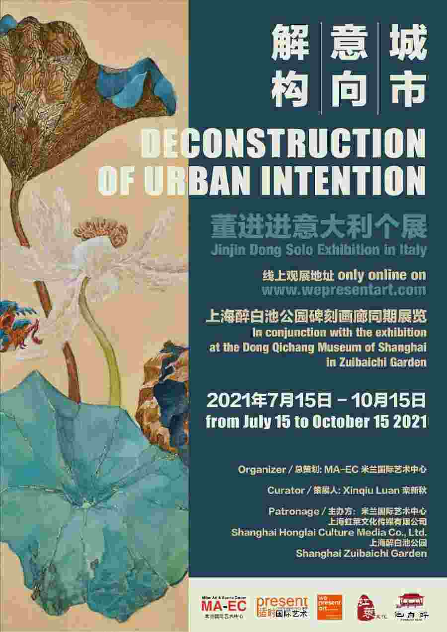 In Deconstruction of urban intention sono in esposizione oltre 40 lavori, tra dipinti ad olio e disegni di Jinjin Dong, noto pittore di Shanghai. Il focus della mostra è incentrato sulla rappresentazione del fiore di Loto, arricchita di nuovi elementi che denotano una profonda comprensione della natura. La perizia tecnica dell’artista e la sua visione lungimirante rendono unica ed originale la sua interpretazione della cultura del Lotus.