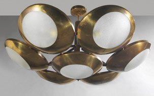 Alcune straordinarie illuminazioni Arredoluce, Stilnovo e Venini, ma anche Fontana Arte e Arteluce, tra le quali spiccano i progetti di Gio Ponti, Max Ingrand, Gino Sarfatti e un “6 Lune” di Angelo Lelii.