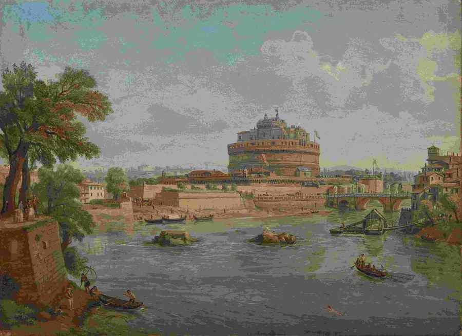 E sempre idealmente, si chiude nel terzo decennio del Settecento, periodo cui appartiene una veduta romana a olio su tela di Gaspar van Wittel raffigurante il TEVERE CON CASTEL SANT’ANGELO VISTO DA SUD: opera inedita che compare per la prima volta sul mercato, inserita in catalogo con la stima di 100.000/150.000 euro.