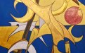 Francesca Thermes, artista autodidatta con formazione in architettura e design, porta in galleria un linguaggio intimo e meditativo, costruito su fondi blu e oro attraversati da segni netti e strutture fluttuanti. Le sue opere evocano paesaggi interiori e memorie sospese, restituendo una pittura che diventa luogo di ascolto, consolazione e leggerezza.