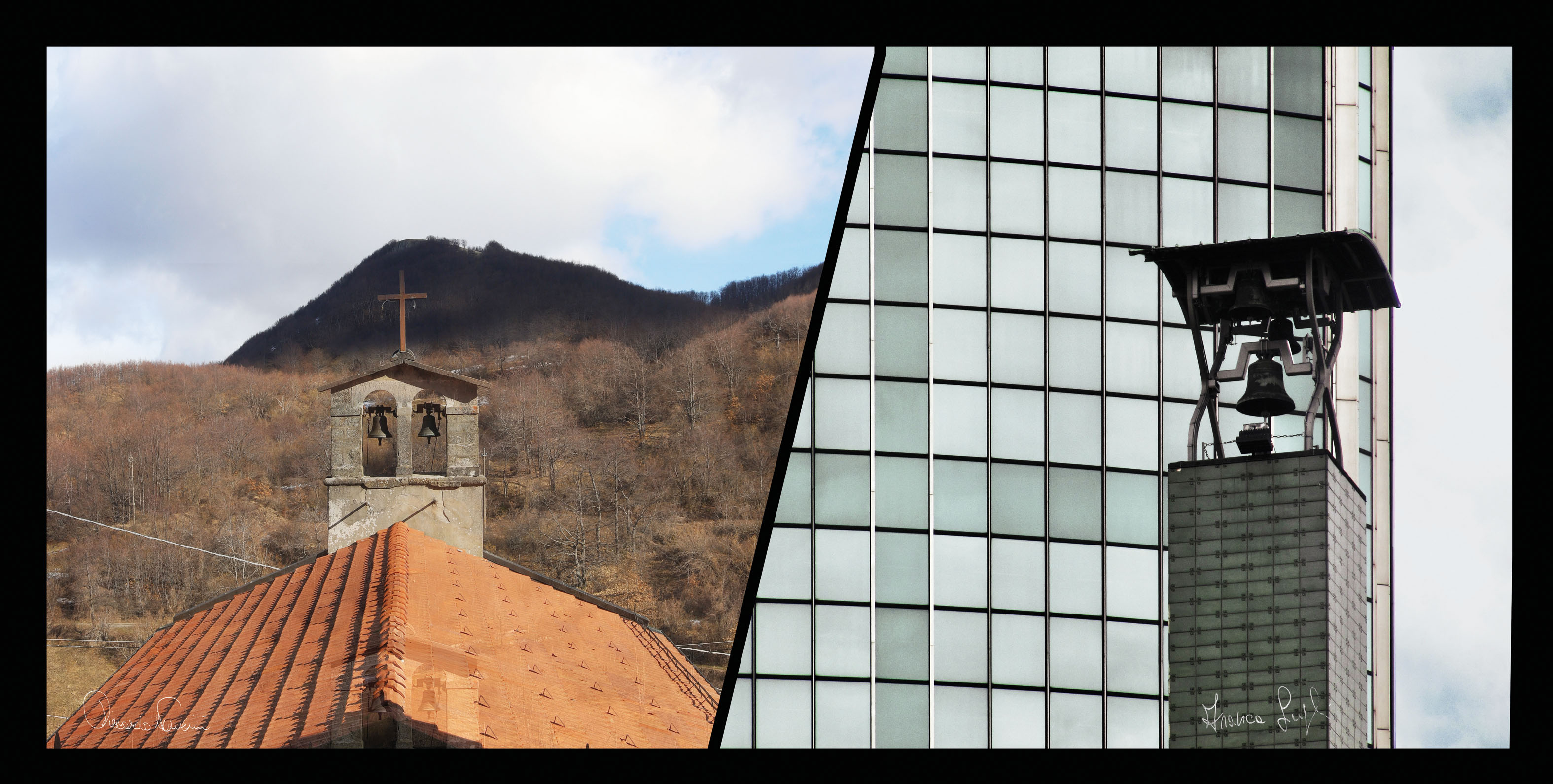 ……. tra le architetture si staglia il medesimo spicchio di cielo, incorniciato dal legno o dalle pietre che l’uomo ha innalzato, diviso in fette da murature curve o perpendicolari, antiche o contemporanee. ….