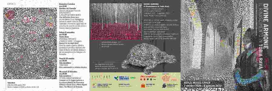 Divine Armonie - Il Rinascimento in Tobia Ravà, aperta fino al 9 gennaio 2022 è allestita nei prestigiosi spazi espositivi del Museo Civico di Asolo il sabato, la domenica e i festivi dalle 9.30 alle 12.30 e dalle 15 alle 18, è organizzata da PaRDeS - Laboratorio di Ricerca d’Arte Contemporanea di Mirano e dall’Associazione culturale Fabula Viva ed è curata da Patrizia Lazzarin e da Maria Luisa Trevisan. Una proposta artistica legata alla storia del territorio: l’esposizione intende infatti sottolineare il legame con il Rinascimento che riaffiora come “impronta ideale” nelle memorie materiali ed immateriali di Asolo. Per spiegare questo rapporto e il processo creativo dell’artista sono organizzati i seguenti eventi: venerdì 29 ottobre ore 20.30 incontro con l’artista in sala consiliare su arte matematica e mistica ebraica, sabato 6 novembre ore 21 al Teatro Duse lo spettacolo Il Ruggero. Dante e le vie degli ebrei con Emanuela Mercante e Daniele Tonini, mercoledì 15 dicembre ore 20.30 in sala consiliare incontro Vittorio Robiati Bendhaud sui contatti tra la lingua italiana e la cultura ebraica da Francesco D’Assisi a Dante fino a Mario Rigoni Stern. Tra mistica e armonia.